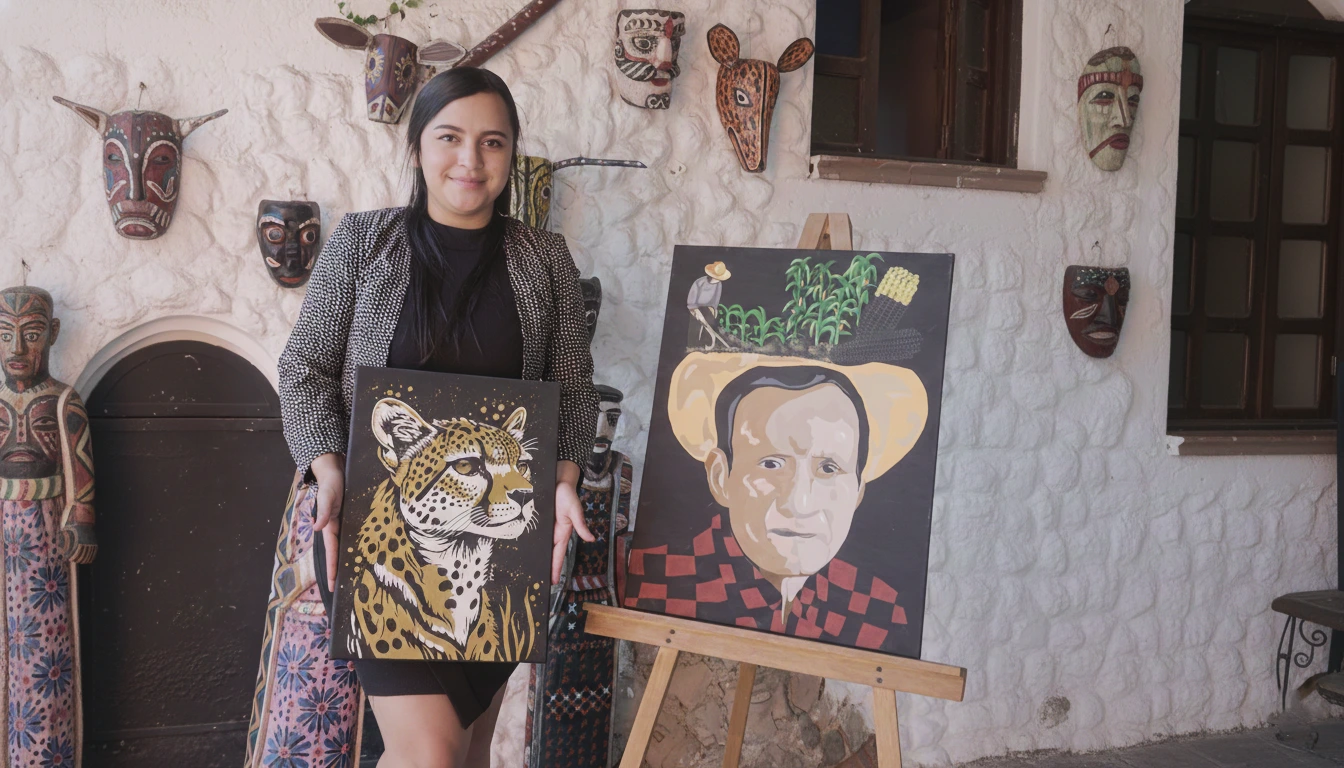 Desde paisajes que capturan la belleza del hogar hasta retratos que inmortalizan a seres queridos, desde obras abstractas que desafían la lógica hasta "La Siembra" que honra las raíces campesinas, María de los Ángeles pinta con la conciencia de que cada lienzo es un acto de resistencia contra el olvido.