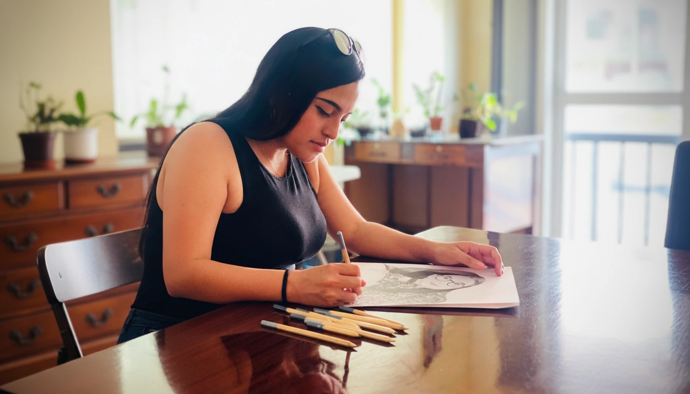 Después de esa primera vez, nunca se detuvo. Siguió dibujando lo que veía, en su mayoría paisajes, con una constancia que desafiaba los bloqueos creativos y las dudas propias de cualquier artista en formación. Su proceso fue constante, disciplinado, casi como una promesa silenciosa que se hacía a sí misma cada día.