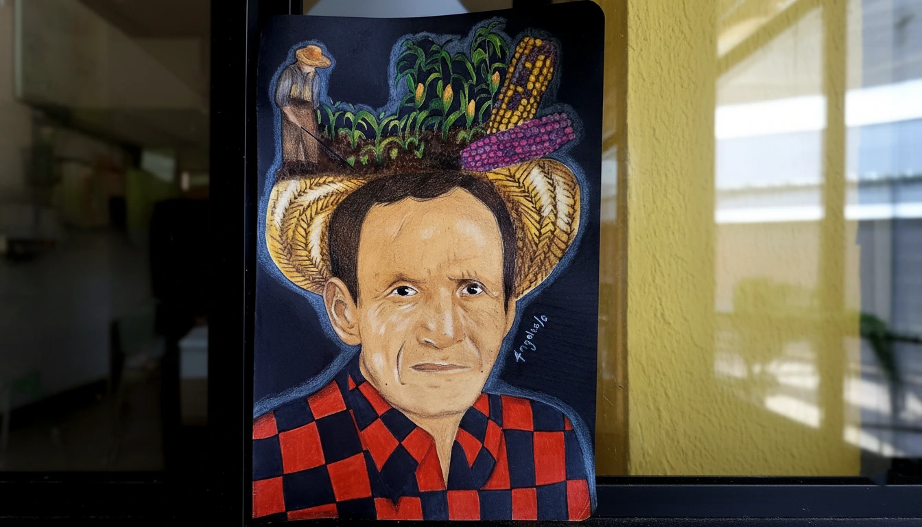 Ese agricultor es su abuelo. María de los Ángeles creció con sus abuelos, y la siembra no era solo una actividad económica sino un estilo de vida, una filosofía de paciencia y dedicación que ella absorbió y que ahora se refleja en su arte.